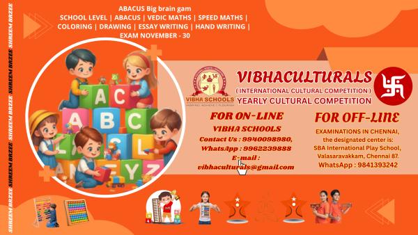 We are delighted to invite you to participate in VIBHACULTURALS, an International Cultural Competition designed to give children and youth a global platform to express their inner creativity and unique talents.